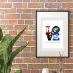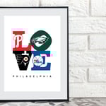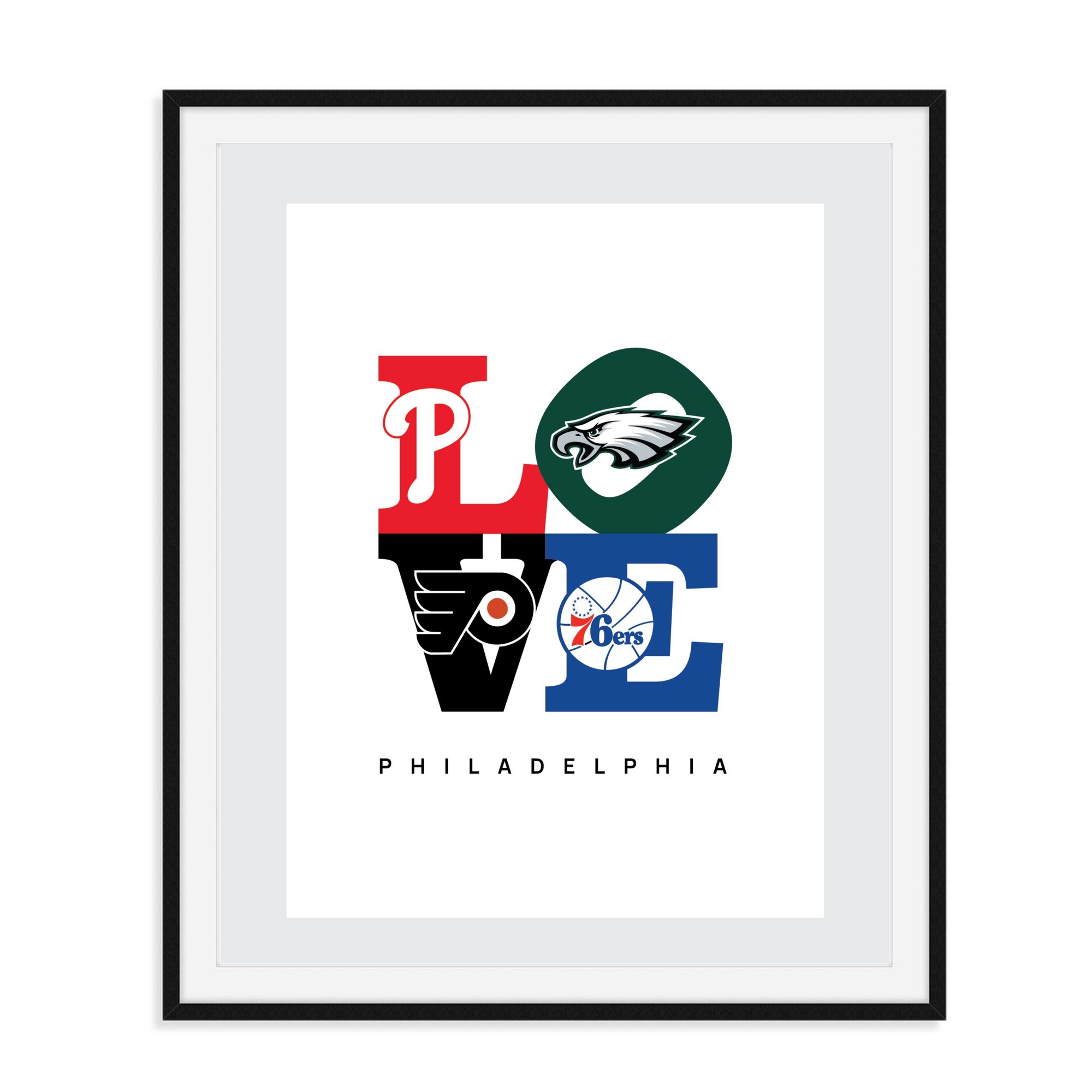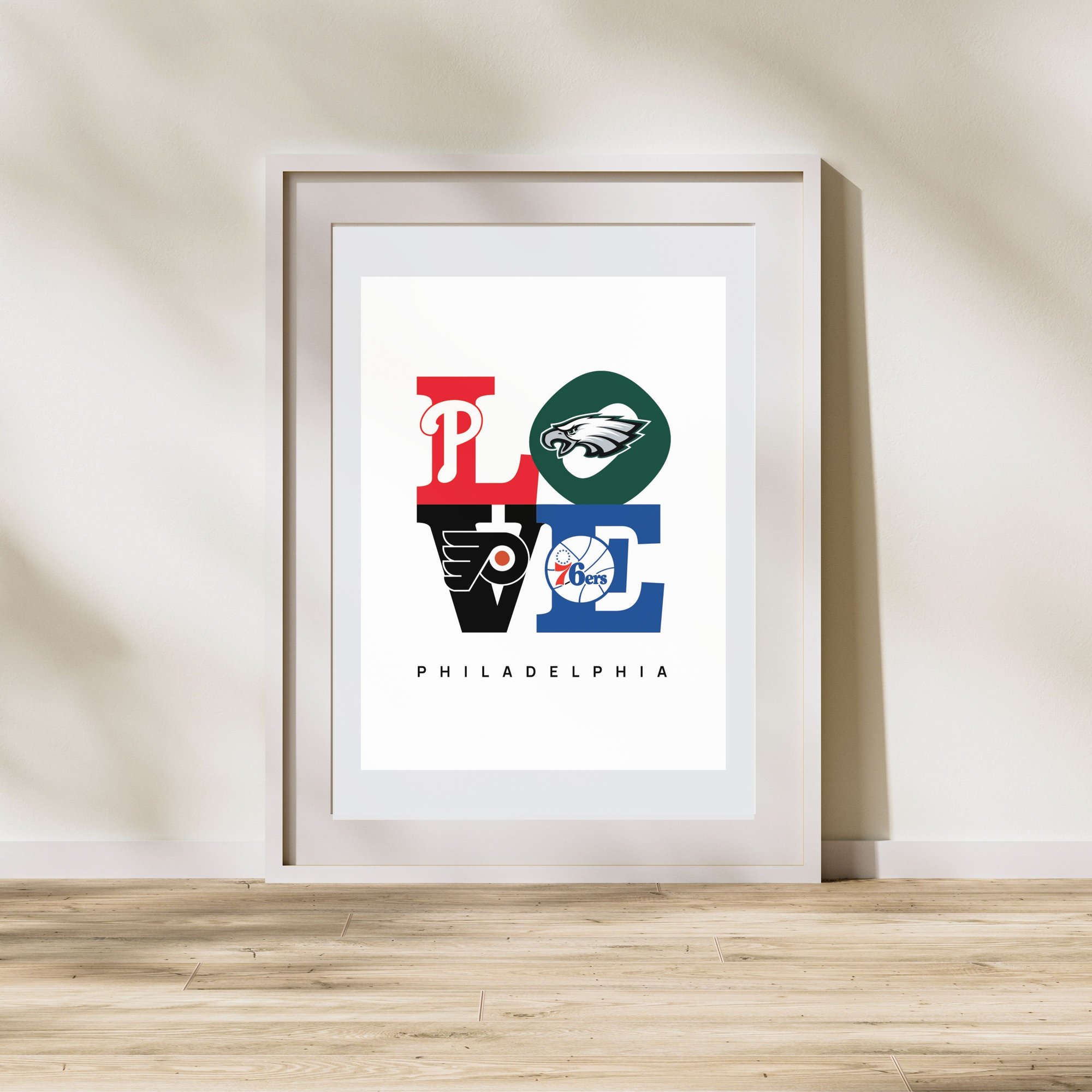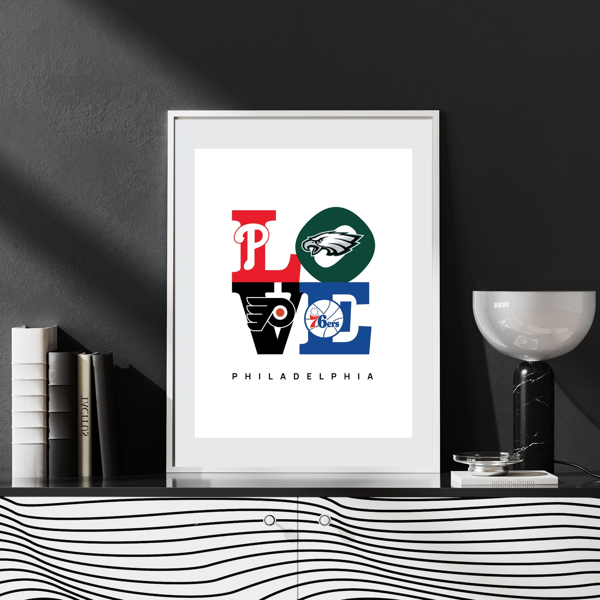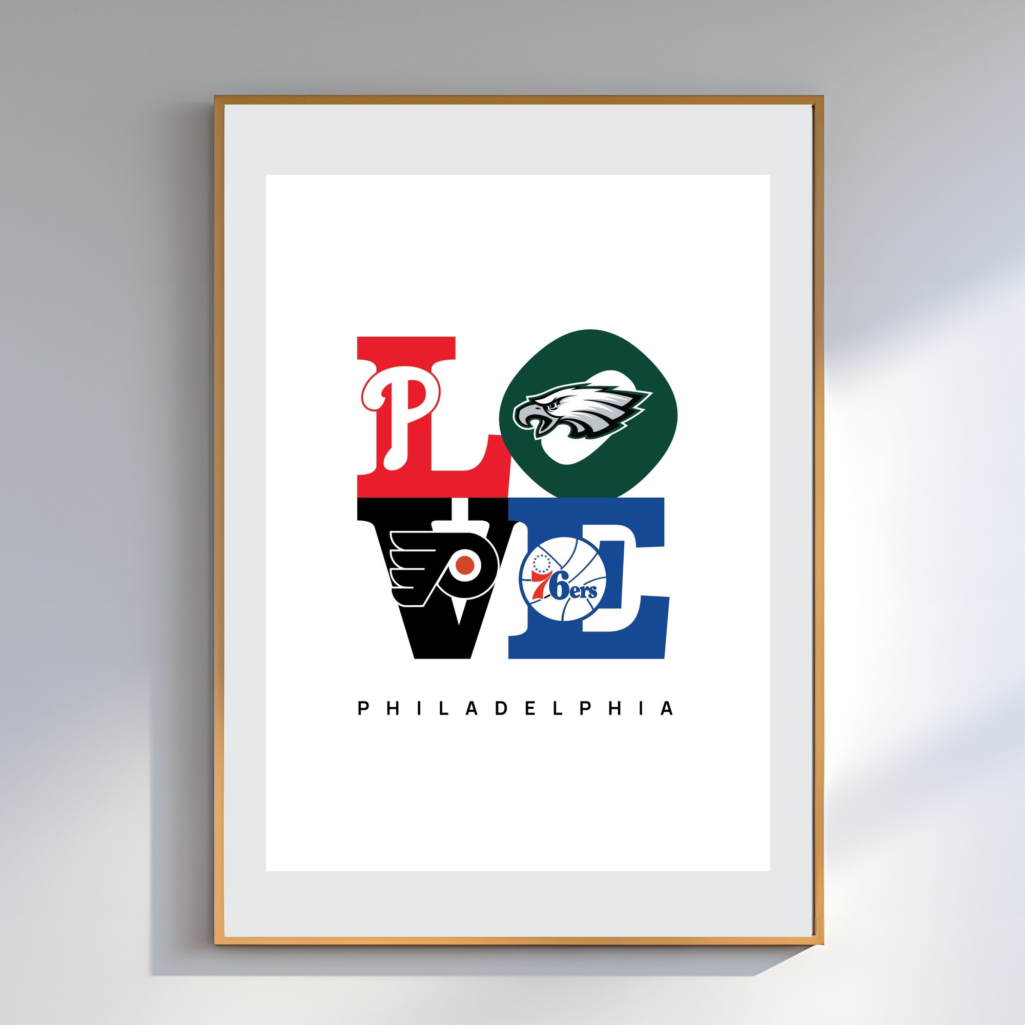 This digital art print brings together all four of Philadelphia’s most beloved teams in a fresh take on the classic LOVE design. Perfect for fans who cheer for the whole city, it blends bold colors, clean lines, and unmistakable team-inspired details into a piece that looks great anywhere you choose to display it.