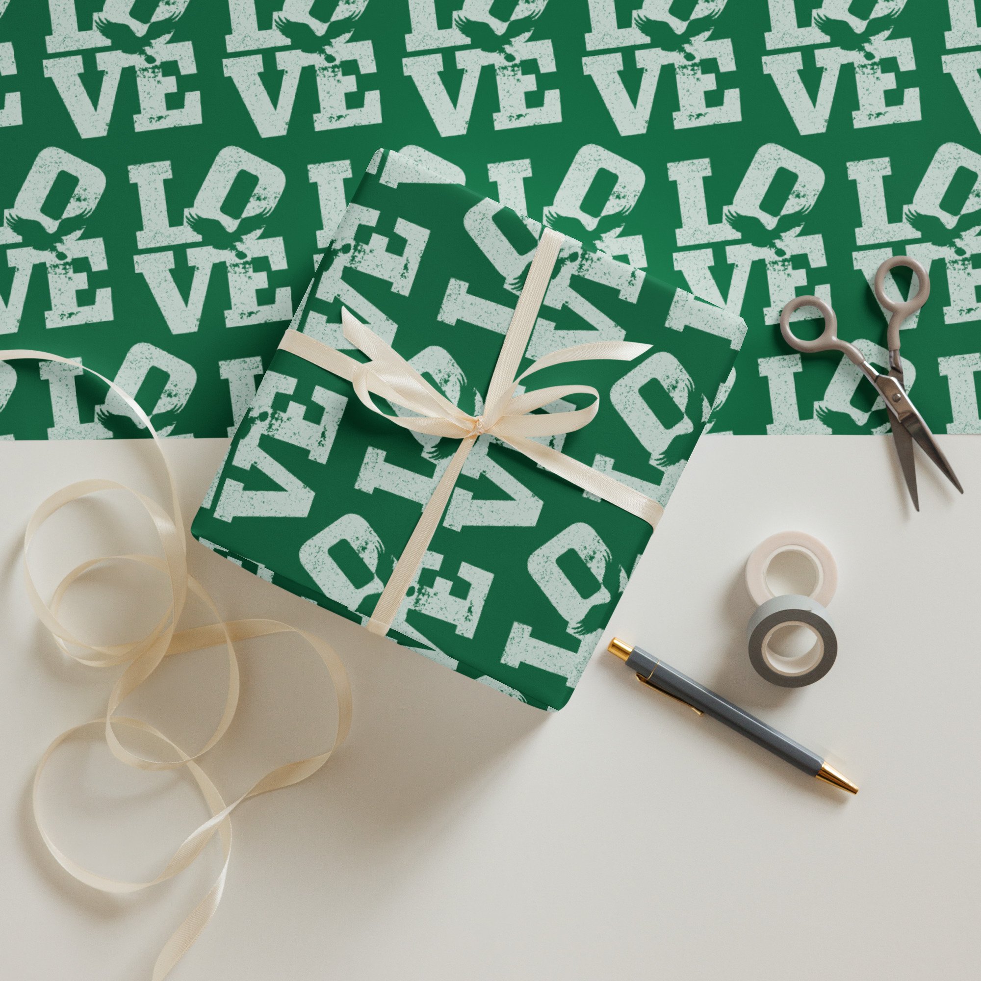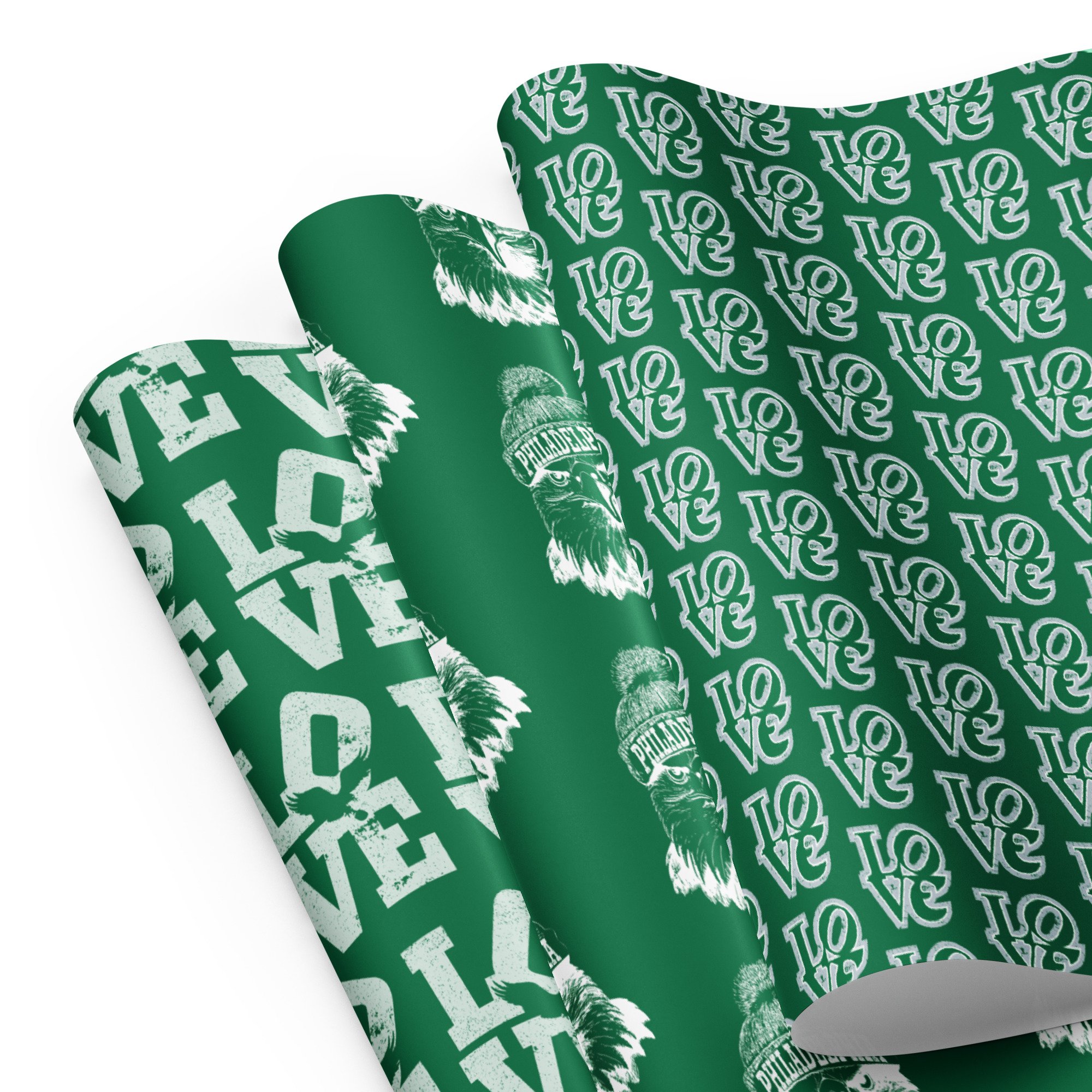 Add a bold, stylish touch to your gift-giving with these Eagles LOVE Wrapping Paper Sheets! Perfect for sports enthusiasts and fans of all ages, these high-quality sheets feature a vibrant green background with eye-catching white "LOVE" and eagle motifs, making every present stand out with a spirited, team-inspired flair. Whether you're wrapping birthday, anniversary, or special occasion gifts, these sheets bring a unique blend of elegance and fandom to your celebrations.